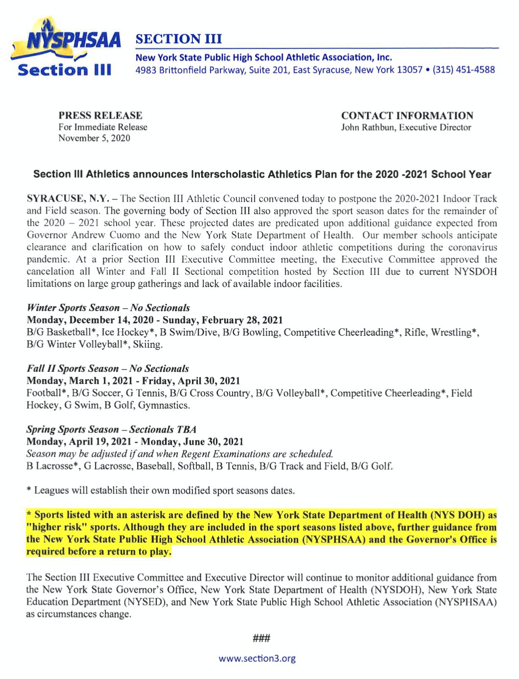 John Rathbun On Twitter Press Release From Today S Section Iii Athletic Council Meeting Https T Co Dvil7wfee5 Twitter
